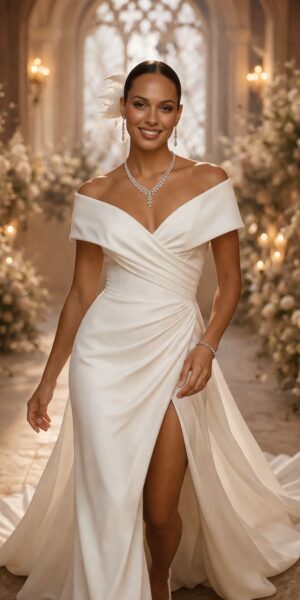 Strakke bruidsjurk lange mouwen en split – Jessa