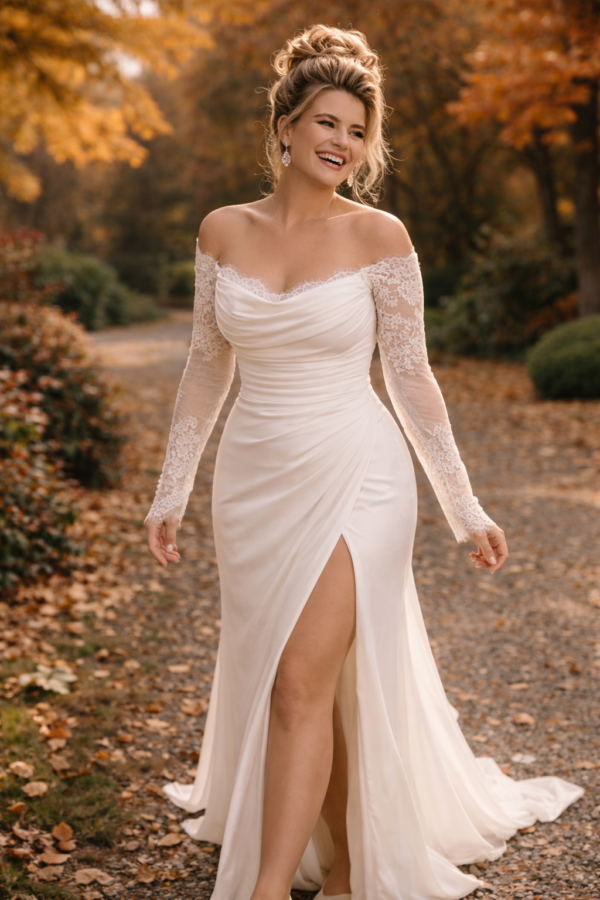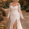 Pas deze bruidsjurk met lange mouwen en split
