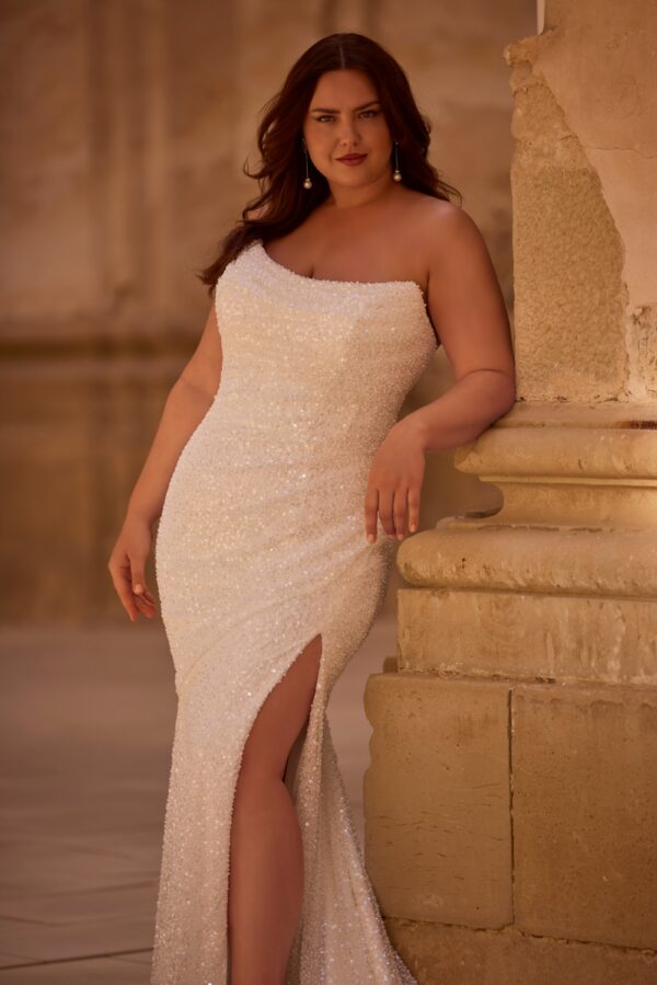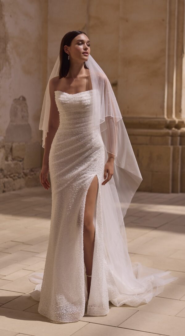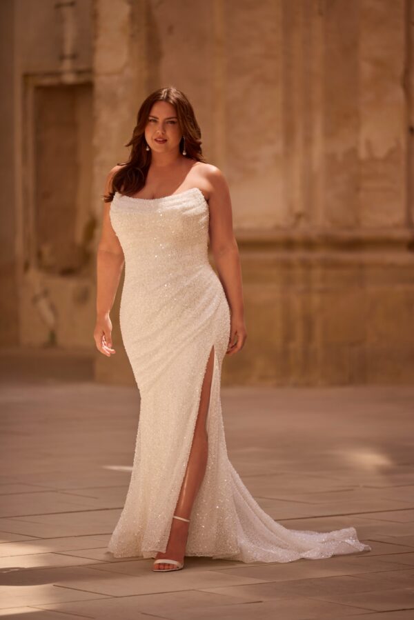 Sprankelende Fit & Flare Bruidsjurk van pailletten en split