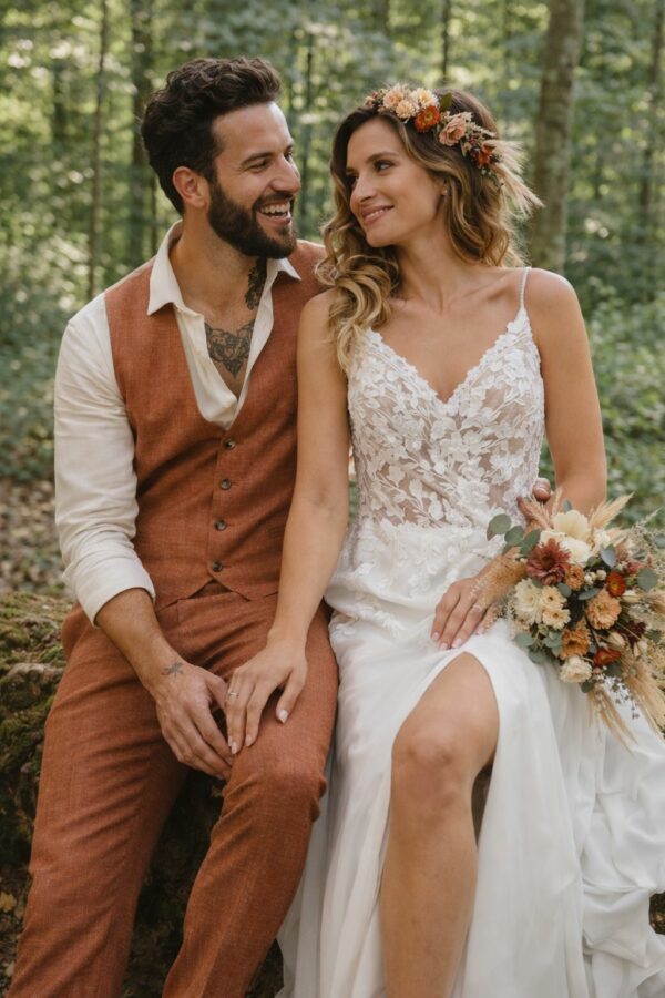 Perfect voor een bruiloft in het bos, buitenlocatie of een informele setting waar je jezelf wilt blijven.